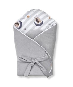 LITTLE ANGEL Zavinovačka šnúrovacia pevný chrbát ANGEL – Outlast® 77x77cm krajka šedá na bielej