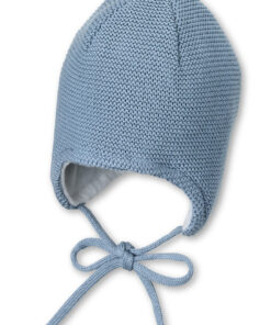 STERNTALER Čiapka pletená GOTS bavlnená podšívka na viazanie blue chlapec veľ. 43 cm- 5-6 m