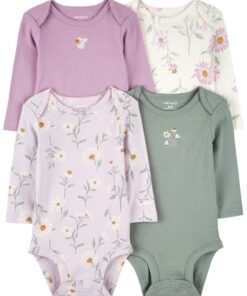 CARTER’S Body dlhý rukáv Pink/Blue Floral dievča 4ks 9m/ veľ. 74