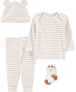 CARTER’S Set 4dielny tričko dl. rukáv, tepláky, čiapka, ponožky Brown Stripes neutrál NB/ veľ. 56