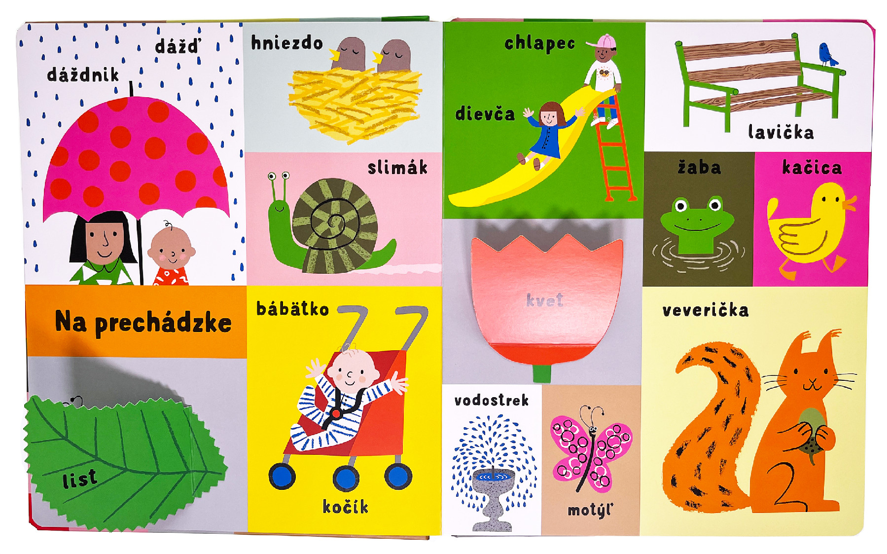 Aké sú prvé slová vášho dieťaťa? V tomto leporele plnom roztomilých ilustrácií nájdete 100 slov, ktoré sú základným kameňom slovnej zásoby každého dieťaťa. Leporelo je doplnené odklápacími okienkami a dieťa si tak môže zároveň precvičovať jemnú motoriku a koordináciu prštekov pri odklápaní obrázkov. Čo sa asi skrýva pod okienkom? Každá dvojstrana je venovaná rôznym oblastiam, ako sú napríklad predmety v domácnosti, vozidlá, zvieratá v zoo. S touto knižkou ľahko naučíte dieťa pomenúvať zvieratá na farme alebo časti ľudského tela.