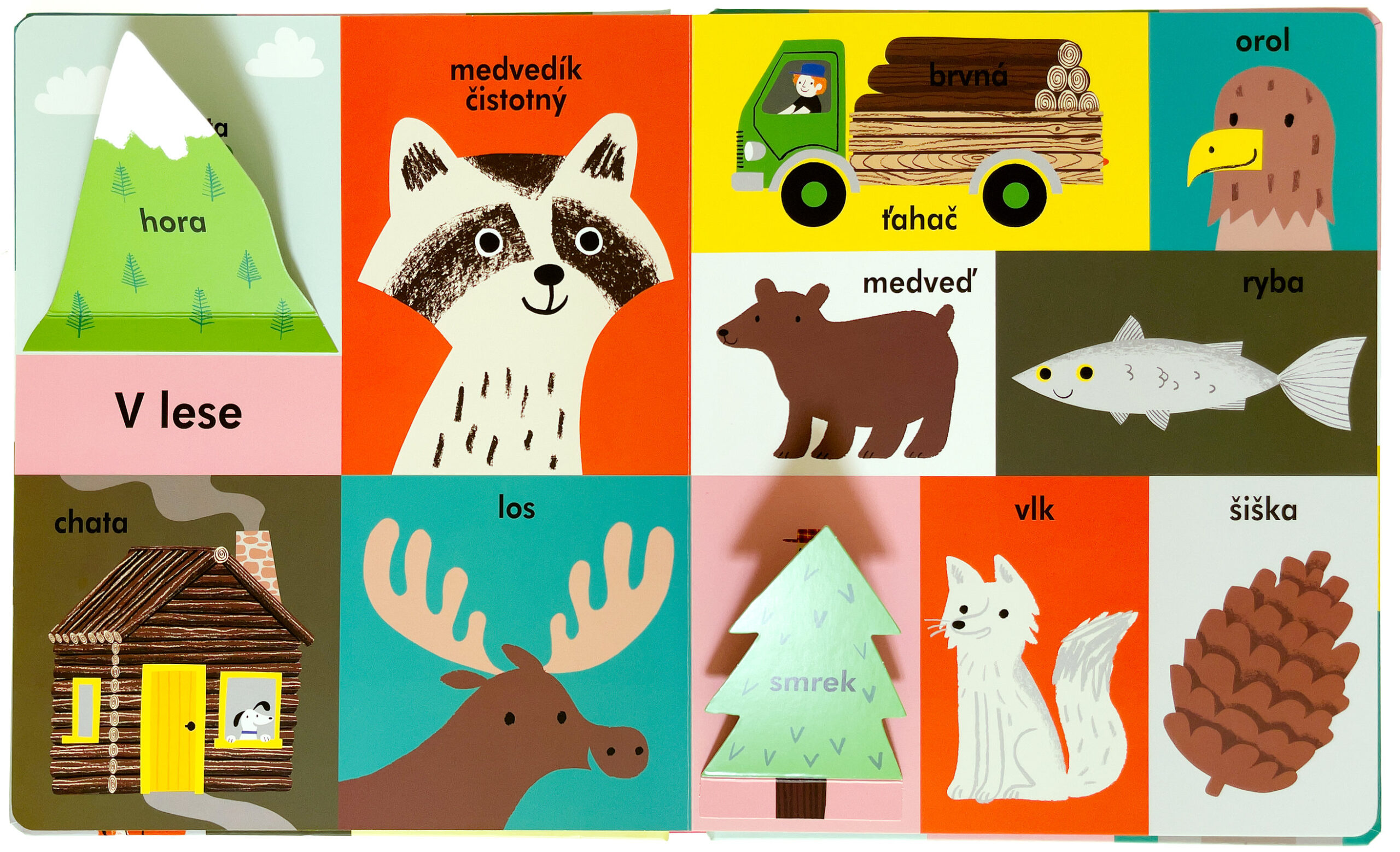 Prekrásna kniha prvých slov o prírode pre malé deti. Pozrite sa pod okienka, kto sa tam ukrýva? Leporelo s veľkými okienkami baví a stimuluje reč detí.