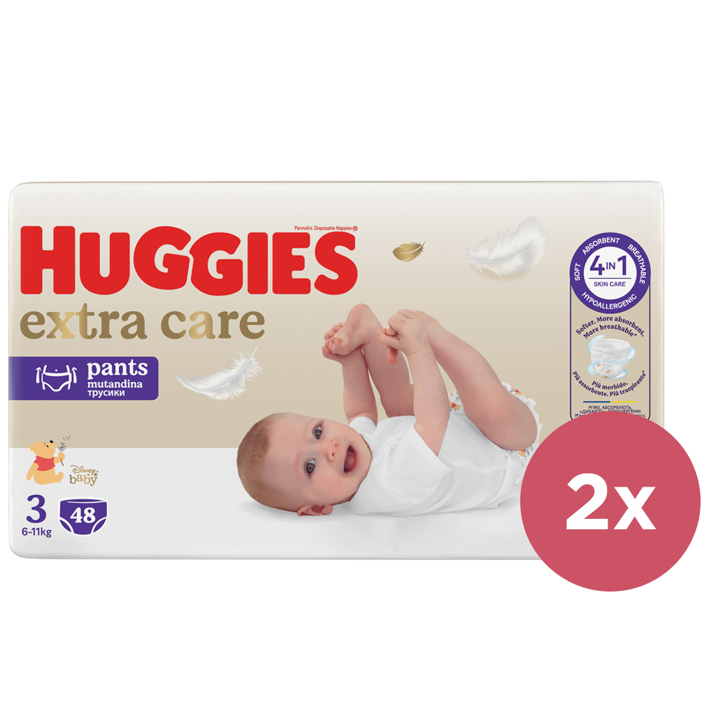 Prémiové jednorazové plienky Huggies Extra Care sú najjemnejšie a najmäkšie plienky značky Huggies. Mäkké vložky, ktoré prichádzajú do priameho kontaktu s pokožkou dieťaťa, vytvárajú jemnú bariéru medzi pokožkou a tekutou stolicou. Jedinečná vrstva Soft Absorb v okamihu absorbuje tekutinu a udržuje detský zadoček v suchu. Špeciálna zadná kapsa chráni pred únikom v oblasti chrbta. Materiál, z ktorého sú plienky vyrobené, navyše umožňuje pokožke dýchať. Plienky sú 2x tenšie vďaka technológii Thin Core a absorbujú o 20 % viac tekutiny ako iné plienky. Ľahko sa obliekajú a vyzliekajú, takže prebaľovanie s nimi je hračka. Plienka obsahuje indikátor vlhkosti, ktorý zmení farbu, ak je mokrá. Pre deti s hmotnosťou 6-11kg.