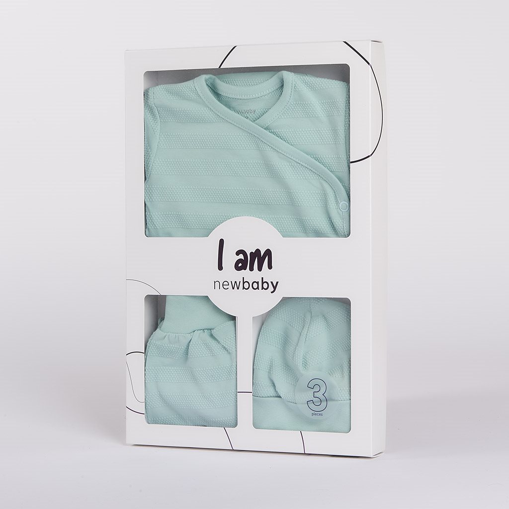 Roztomilá dojčenská 3-dielna súpravička New Baby I AM pre bábätká. Súpravička je vyrobená z veľmi príjemného, mäkkého a kvalitného materiálu, ktorý je vhodný pre bábätká a je vhodná nielen do pôrodnice. Obsahuje celorozopínacie body s dlhým rukávom, polodupačky a čiapočku. Body má bočné zapínanie po celej dĺžke a medzi nožičkami na cvočky. Polodupačky majú v páse širší pružný lem, ktorý netlačí na bruško bábätka. Čiapočka so širším lemom dobre drží na hlavičke bábätka a nepadá. Je veľmi praktická a netlačí na hlavičku bábätka. Celá súpravička má nový neobyčajný dizajn s atraktívnym vzorom látky. Je navrhnutá s ohľadom na potreby bábätka a je vhodná aj ako milý darček. Súpravička je v praktickej Eko krabičke. Zloženie: 100% bavlna.