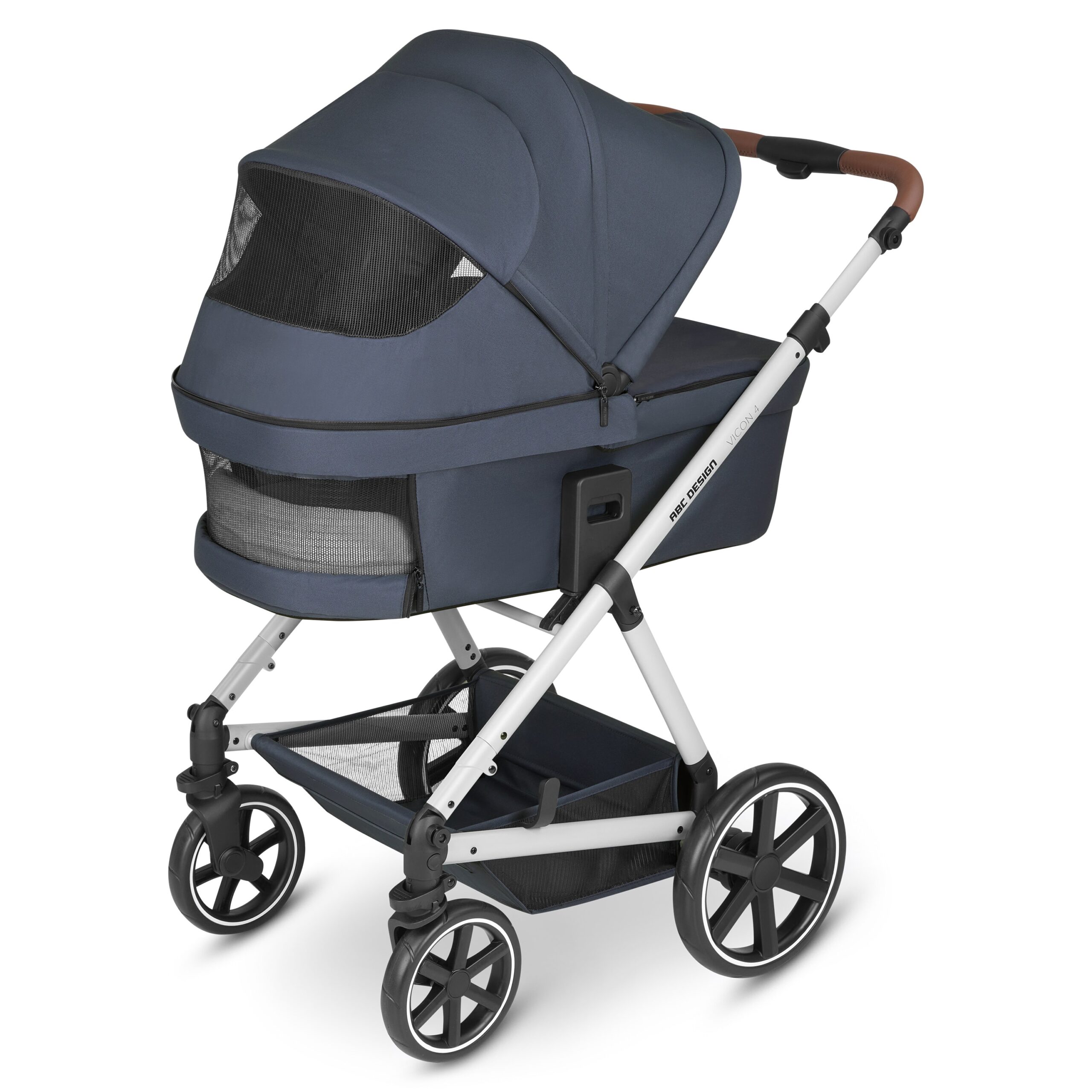 Vicon 4 je ideálním 2 v 1 kočárkem do rodiny, která hledá společníka pro jejich každodenní život. Tento městský kočárek se extrémně dobře ovládá a řadí se mezi nejlehčí kočárky značky ABC Design. Extravelká korbička se speciální ergonomickou matrací Overnight zajišťuje maximální pohodlí pro vaše dítě již od prvního dne po narození. Ventilační okénka na stříšce a korbičce se navíc starají o dokonalou cirkulaci vzduchu během horkých letních dní. Praktická paměťová funkce uvolňovacích tlačítek na korbičce umožňuje pohodlnou každodenní manipulaci s kočárkem. Tlačítka na obou stranách stačí stisknout jednotlivě, díky čemuž můžete mít neustále jednu ruku na madle korbičky. Otočná bezdušová přední kola a lehký podvozek kočárku Vicon 4 vám umožňují snadnou a hladkou jízdu na jakémkoliv povrchu ve městě a díky integrovanému odpružení se kočárek postará i o klidné projížďky parkem. Pro ještě více flexibility můžete Vicon 4 zkombinovat také s vaším dětským cestovním systémem. Jakmile je vaše dítě schopné samostatně sedět, můžete korbičku vyměnit za sportovní nástavbu, která díky nastavitelné opěrce nohou a zad poskytuje dítěti komfortní svezení.