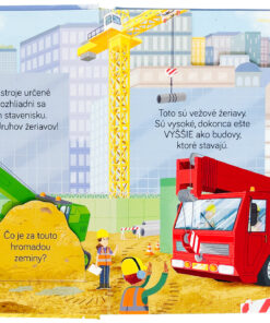 Pozor! Treba vyložiť dodávku materiálu. Opatrne. Žeriav vysúva svoje dlhé rameno. Ako sa stavajú vysoké budovy? Na čo slúži žeriavu kabína? A pracujú žeriavy len počas dňa? Nechajte deti nakuknúť pod okienka, nech zistia, ako to celé funguje. Pri prehliadaní ilustrácií sa dozviete tiež mnoho zaujímavých informácií o stavbe budov a práci na stavenisku. Kto by nechcel ovládať silný žeriav? Deti sa môžu na chvíľu stať skúsenými žeriavnikmi alebo žeriavničkami. Táto knižka je ideálna pre malé ruky a zvedavú myseľ.