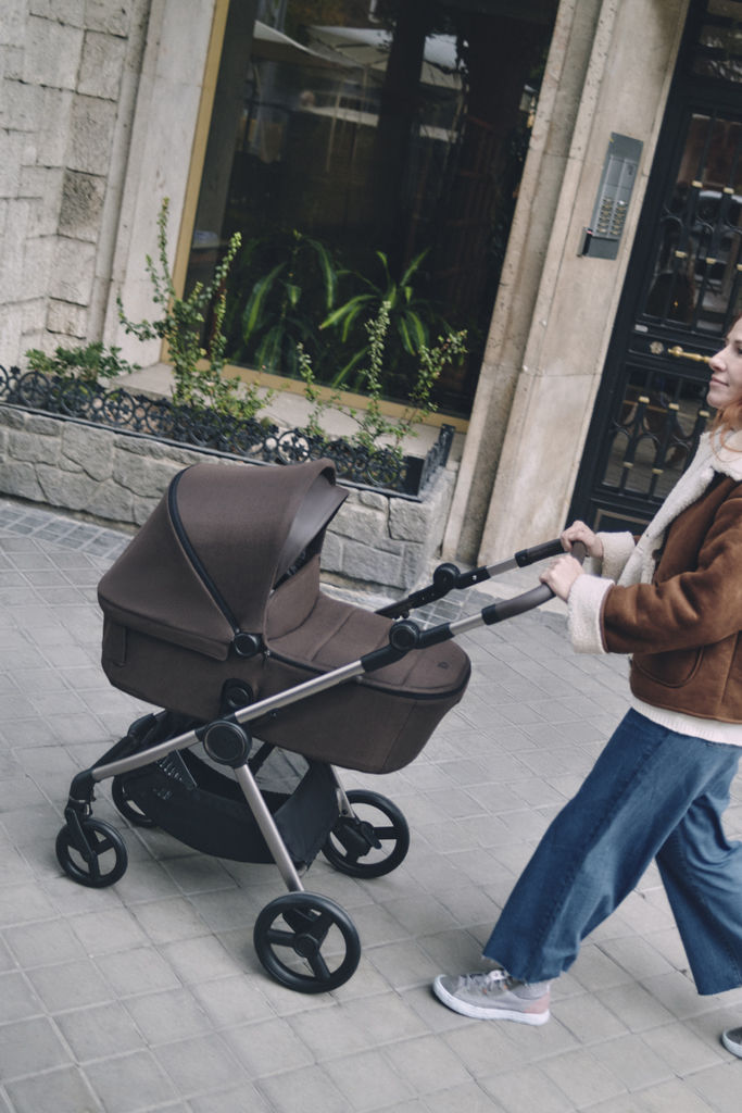 Maximálna kompaktnosť, aby sa zmestil do auta, lietadla a dokonca šetrí miesto v domácnosti. Rám zložíte spolu so sedacou jednotkou v oboch smeroch a vaničku dokonca zložíte do veľkosti príručnej batožiny. Ľahká konštrukcia umožňuje prenášať kočík jednou rukou, či už v každodennom živote alebo na medzinárodných cestách.