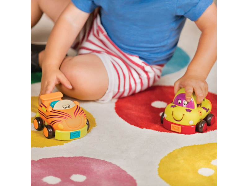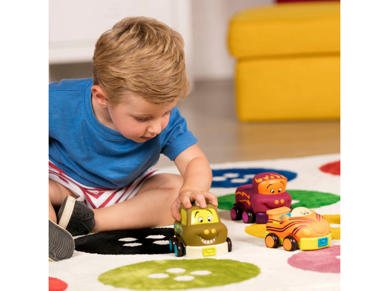 Autíčka sú vyrobené z príjemného, mäkkého materiálu a nepotrebujú batérie.