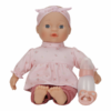Rozkošnú bábiku v podobe bábätka môže vaše dievčatko aj chlapček prezliekať, správať, kŕmiť fľaštičkou, upokojovať cumlíkom aj voziť v kočíku. Bábika je oblečená do nežných ružových šiat, rebrovaných nohavíc a čelenky, súčasťou balenia je aj fľaštička a cumlík.