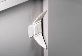 Tento praktický bezpečnostný uzáver chráni pred otvorením posuvných dverí skríň alebo komôd. Upevňuje sa lepiacou páskou obsiahnutou v balení.