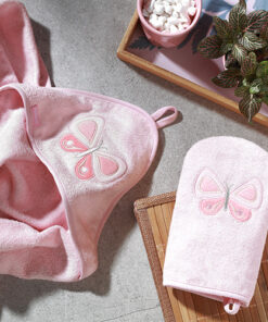 – Dizajnová výšivka na kapucni osušky