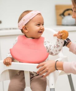 Mäkký podbradník účinne chráni oblečenie vášho dieťaťa pred znečistením počas jedenia. Podbradník je vybavený nastaviteľným uzáverom a špeciálnym vreckom. Je vyrobený z ľahkého a pohodlného materiálu. Ľahko sa čistí a dá sa umývať v umývačke riadu.