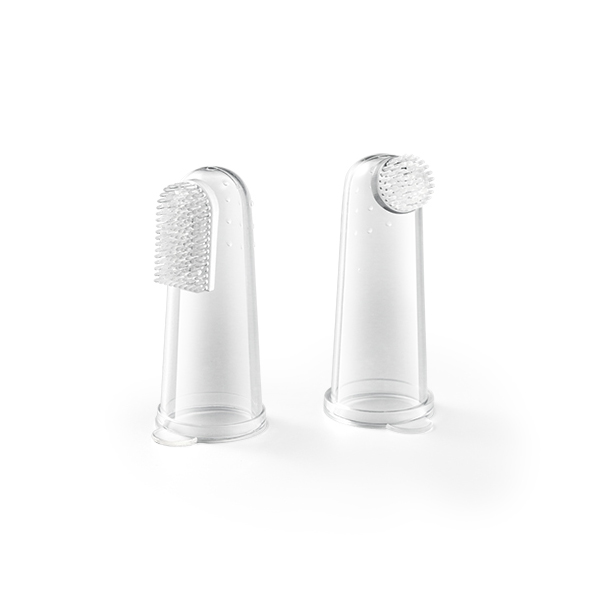 Silikónové detské zubné kefky Vám pomôžu udržať čistotu ústnej dutiny u detičiek od prvých mesiacov života. Sada obsahuje dve rôzne prstové zubné kefky, ktoré sú vyrobené z mäkkého silikónu. Jedna z nich zabezpečuje jemné čistenie zubov a druhá masáž ďasien. Oba majú jemné výstupky a mäkkú kefku. Navyše môžete použiť praktické hygienické puzdro.
