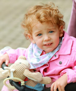 Slintáčik je vyrobený z dvojvrstvovej 100% bavlny, takže jemne obopína krk dieťatka. Šatka je obojstranná. Ľahko ju prispôsobíte štýlu oblečenia Vášho bábätka.