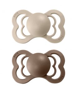 BIBS dobývajú celý svet. Jednoduché a štýlové. BIBS sú cumlíky navrhnuté a vyrábané v Dánsku s viac ako 30 ročnou tradíciou. Ich minimalistický škandinávsky dizajn, kvalita a široké farebné prevedenie sú pre BIBS cumlíky typické. Okrem jedinečného dizajnu dbá značka BIBS na to, aby boli cumlíky zdravotne nezávadné a napomáhali prirodzenému vývoju detí. BIBS Supreme je exkluzívny cumlík v štýlovom elegantnom dizajne v krásnej farebnej ponuke jemných, pastelových, zemitých aj neutrálnych farieb. Sacia časť je symetricky tvarovaná, vyrobená zo 100%-ného prírodného kaučuku, ktorý je mimoriadne pružný a mäkký zároveň, odolný proti vytvoreniu trhlín a odštiepeniu malých kúskov. Ostané časti sú vyrobené zo zdravotne nezávadného polypropylénu (PP). Cumlík je navrhnutý tak, aby nedráždil citlivú pokožku bábätka. Vďaka mäkučkému kaučuku a zabudovanému vzduchovému ventilu dieťa cumlík ľahko stláča a formuje v ústach, čím je zachovaný prirodzený vývin podnebia, zúbkov a ďasien detí. Prečo deti obľubujú cumlíky BIBS? Extra ľahučký. Výnimočná chuť prírodného kaučuku, deti ho prirodzene uprednostňujú pred syntetickými materiálmi ako je silikón. Prečo rodičia obľubujú cumlíky BIBS? Dieťa saje len 100% prírodný bezpečný materiál – kaučuk vyrobený z miazgy stromu Hevea. Vďaka špeciálnemu tvaru je minimalizovaný dotyk cumlíka s pokožkou, pokožka zostáva suchá a nevznikajú podráždenia. Štýlový dizajn v krásnych farebných prevedeniach. Vyrobené v EU. Zloženie: Sacia časť: 100% prírodný kaučuk Ostatné časti: polypropylén (PP) Bez BPA, PVC, ftalátov a iných škodlivých látok. Vyrobené v Dánsku. Testované v Consumer Lab Denmark. V súlade s európskym štandardom EN 1400+A1. Veľkosti: BIBS Supreme sú k dispozícii v 2 veľkostiach. Veľkosť 1: 0-6 mesiacov Veľkosť 2: od 6 mesiacov