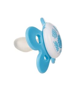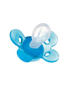 – extrémne mäkká, zúžená pätička cumlíka umožňuje dieťaťu zavrieť ústa a redukuje riziko nerovnomerných zubných oblúkov (je ortodonticky korektná)