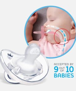 – extrémne mäkká zúžená pätička cumlíka umožňuje dieťaťu zavrieť ústa a redukuje riziko nerovnomerných zubných oblúkov (je ortodonticky korektná)