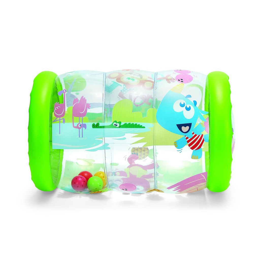 Nafukovací hudobný valec podnecuje prirodzenú túžbu dieťatka po pohybe a trávení času na brušku. Farebné loptičky v ňom poskakujú, takže preliezanie valcom je zábavné a povzbudzuje dieťa k lozeniu. Hračka rozvíja psychomotorické a koordinačné schopnosti. Pri zapnutí reprodukuje zábavné melódie.