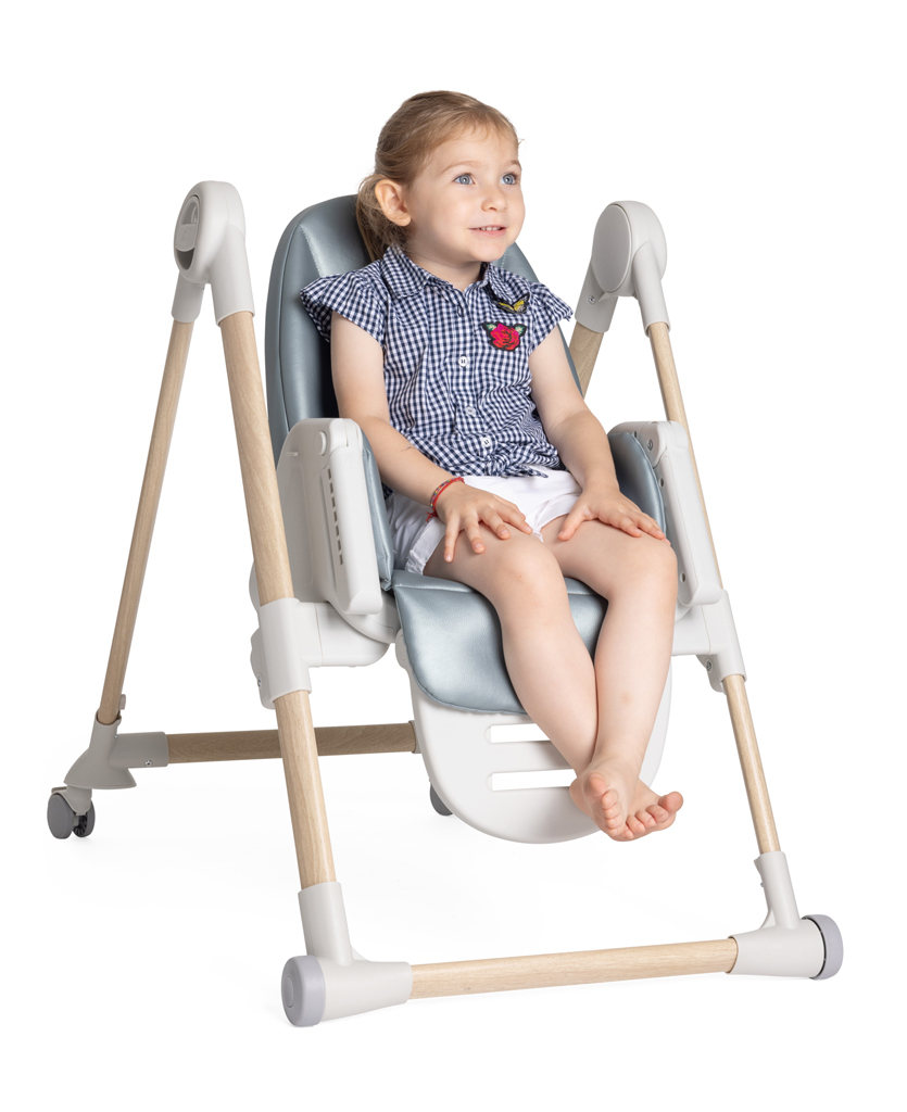 Jedálenská stolička sa dá výškovo nastaviť do 9 rôznych pozícii a prispôsobí sa tak výške, ktorú aktuálne potrebujete. Má 4 kolieska vďaka ktorým viete stoličku prakticky presúvať. Opierka chrbta sa dá nastaviť do úplného ľahu. Opierka nožičiek je rovnako nastaviteľná pre úplný komfort dieťaťa.