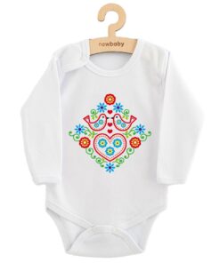 Originálne, štýlové a pohodlné detské body s nádhernou folklórnou potlačou New Baby, dokonale spája tradíciu s moderným dizajnom. Ideálna voľba pre malých milovníkov ľudovej tradície, ktorí ocenia kvalitné materiály a jedinečný vzhľad. Folklórny vzor inšpirovaný tradičnými motívmi dodá vášmu dieťatku šmrnc.