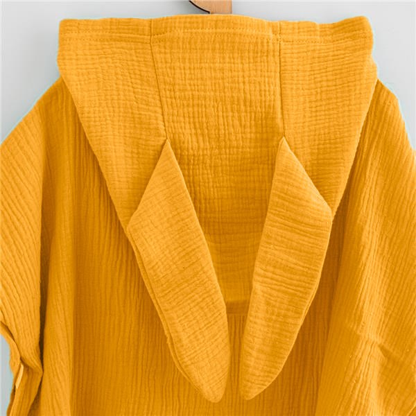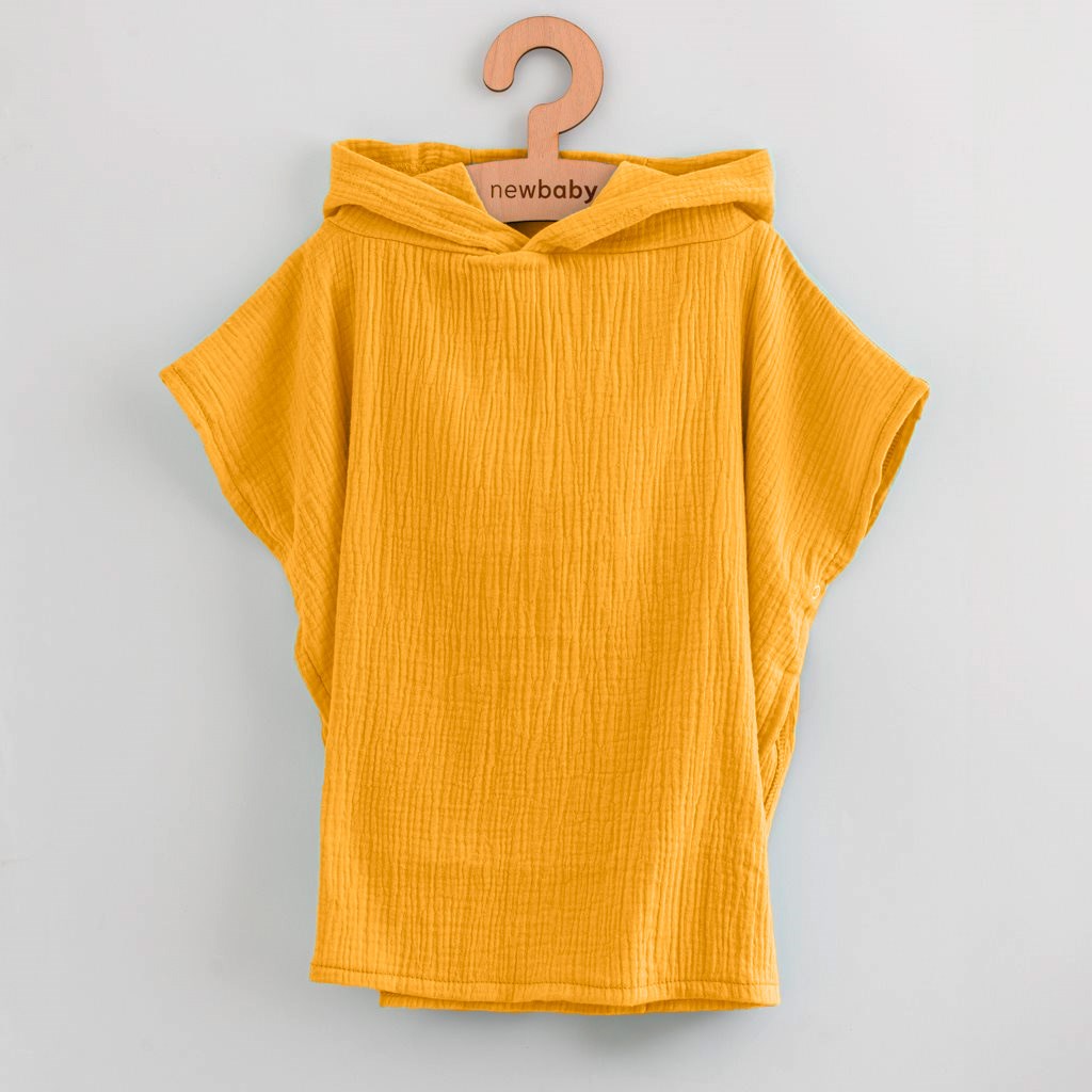 Detské mušelínové pončo New Baby Feeling. Štýlové pončo nielen na doma, ale aj na plávanie pri bazéniku, alebo pri vode. Mušelínové pončo je vďaka materiálu ľahké, vzdušné a krásne savé. Pončo bude chrániť dieťa pred chladom a poslúži aj ako jemná osuška. Vďaka voľnému jedinečnému strihu a roztomilým uškám urobí deťom veľkú radosť. Svojim strihom s dieťatkom porastie a padne na každú postavu. Vyzerá skvele a je možné využívať po celý rok. Pre ľahšie obliekanie a vyzliekanie sú na boku cvočky. Tým vznikne možnosť urobiť otvor na ruku, alebo nechať strih volný. Zloženie: mušelín-100% bavlna. Rozmer: 35 cm bez kapucne, šírka: 40 cm. OEKO-TEX STANDARD 100.