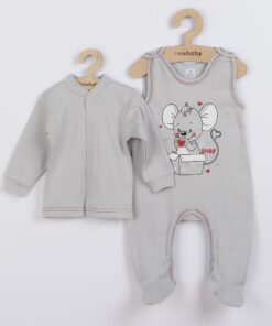 Krásna 2-dielna detská súprava New Baby Happy Elephant. Súprava sa skladá z trička a teplákov. Tričko s dlhým rukávom a zapínaním na cvočky na ramene je vyrobené z príjemnej bavlny. Zdobí ho roztomilý obrázok slona s 3D uškami, ktorý deťom poslúži aj ako upokojujúci prvok alebo hračka pri zaspávaní. Tričko má mäkký lem v páse, na rukávoch a okolo krku. Tepláčky s pružným vysokým lemom v páse a na nohaviciach sú tiež zdobené obrázkom slona s 3D uškami. Materiál: 100 % bavlna. OEKO-TEX STANDARD 100. Veríme, že naša originálna kolekcia vás poteší svojou kvalitou, mäkkosťou a dizajnom.