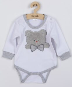Bavlnené dojčenské body s dlhým rukávom New Baby Music pre bábätká. Body je celopotlačené obrázkom notiček a hudobných nástrojov. Zapínanie na cvočky na ramienku a medzi nožičkami. Naše originálne a zároveň veselé body je vhodné pre chlapcov aj dievčatká. Zloženie: 100% bavlna. Rozmery: obvod okolo hrudníka cca 46 cm, dĺžka rukáva cca 25 cm, celková dĺžka cca 43 cm.