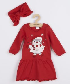Krásne bavlnené dojčenské šatôčky s čelenkou New Baby Christmas pre všetky malé parádnice. Šatičky s dlhým rukávom celopotlačené vianočným vzorom a roztomilou mašličkou, sú ušité v tvare písmena A. Zapínanie na cvoček na ramienku uľahčí obliekanie. Šaty majú veľmi príjemný a kvalitný materiál, ktorý je vhodný pre bábätká. Krásna bavlnená dievčenská čelenka, poteší všetky malé parádnice. Čelenka je pružná, dobre sa prispôsobí. Zloženie: 100% bavlna.