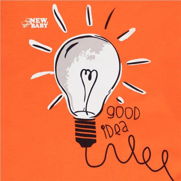 Bavlnené dojčenské tričko New Baby Happy Bulbs. Tričko s dlhým rukávom a farebným lemom okolo krčku, rukávov a v páse je celopotlačené vtipnými a šťastnými žiarovkami s nápisom good idea. Zapínanie na ramienku na cvoček uľahčí obliekanie. Tričko je vyrobené s ohľadom na potreby malých detí s veľmi príjemného materiálu. Zloženie: 100% bavlna.