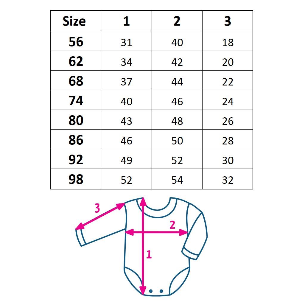 Nápadité dojčenské celorozopínacie body Koala Wild Bear. Farebné body je zdobené krásnou výšivkou medvedíka. Zapína sa na cvočky po celej dĺžke a medzi nožičkami, čo uľahčuje obliekanie a prebaľovanie. Body je pre bábätká dôležitým kúskom oblečenia. Pri akomkoľvek pohybe je chrbátik bábätka stále prikrytý. Má veľmi príjemný a kvalitný materiál, ktorý je ideálny pre bábätká. Zloženie: 100% bavlna.