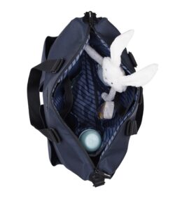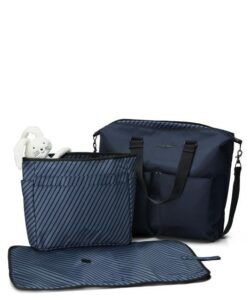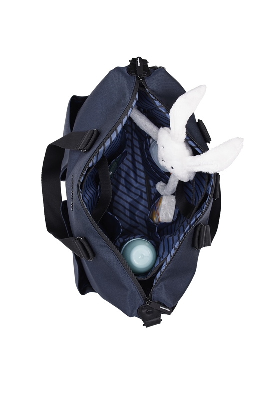 Prebaľovacia taška má dve ľahko prístupné vonkajšie vrecká a jedno vrecko uzavreté zipsom. Odnímateľný ramenný popruh je nastaviteľný tak, aby vyhovoval všetkým veľkostiam tela. Vo vnútri nájdete dva priečinky na textilné fľaše, ktoré dieťaťu zabezpečia teplé alebo studené nápoje na cestách. Súčasťou je aj praktická prebaľovacia podložka a malý organizér (taška).
