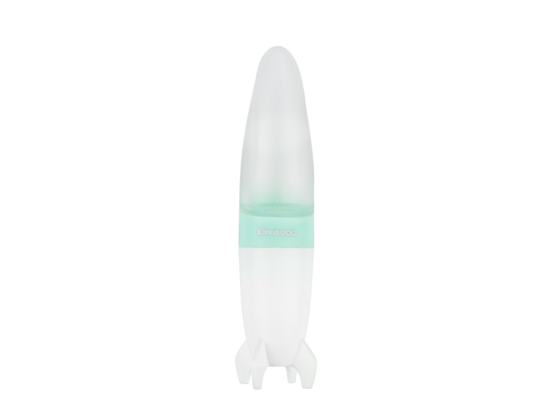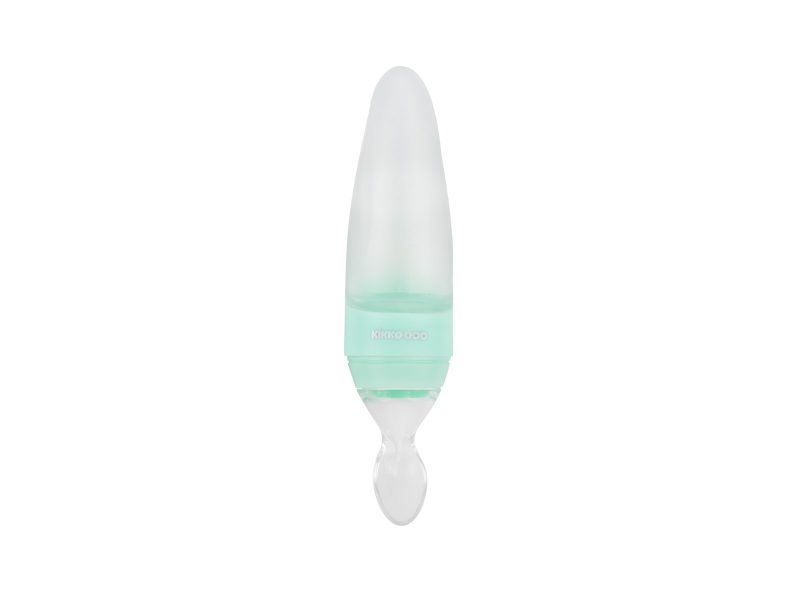 Mäkká silikónová fľaštička na tekuté detské príkrmy je zakončená silikónovou lyžičkou. Umožňuje ľahké a hygienicky čisté kŕmenie dieťaťa doma aj na cestách. Nasadzovací kryt chráni lyžičku pred znečistením.