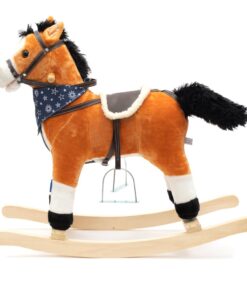 Mäkučký hojdací koník Baby Mix bol navrhnutý pre deti, ktoré majú rady dobrodružstvo. Vyzerá ako skutočný, takže sa vaše dieťa bude cítiť ako skutočný jazdec. Koník je vyrobený z mäkkého plyšu, okolo krku má ozdobnú šatku a je vybavený drevenými hojdacími lištami, ktorých profil chráni dieťa pred prevrátením. Pohodlné sedlo, pevná uzda, kovové strmene, drevené rukoväte a stabilné hojdacie lišty zaistia vašim kovbojom ešte väčšiu stabilitu a pohodlie počas hojdania. Je vyrobený z mäkkého plyšového materiálu, pevné drevené lišty alebo rukoväte je možné ľahko odskrutkovať. Po stlačení tlačidiel na uškách koník vrtí chvostíkom, hýbe tlamičkou, ozvú sa zvuky cvalu, koník zaerdží a zaspieva kovbojskú pesničku. Tri potrebné batérie AA 1,5 V sa vkladajú do púzdra umiestneného na brušku koníka a nie sú súčasťou balenia. Počas hojdania sa dieťa učí koordinovať pohyby svojho tela s koníkom, čo zlepšuje celkovú rovnováhu a motoriku dieťaťa.