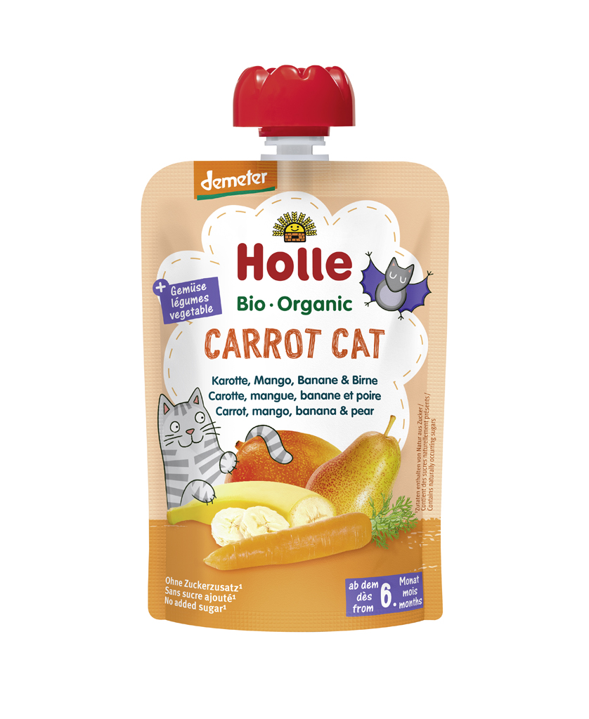 Mrkva** 40%, mango** 20%, banán** 20%, hruška** 20%, citrónová šťava* (**Demeter (z biodynamického poľnohospodárstva), *z biologického poľnohospodárstva))