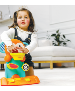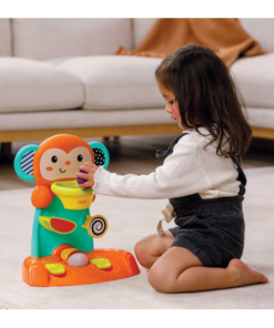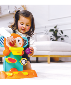 Hrací pult v podobe farebného slona umožní vášmu dieťaťu prvý tréning hádzania na kôš! Pre väčšiu zábavu je jedna z dvoch loptičiek svietiaca, druhá má vrúbkovaný povrch.