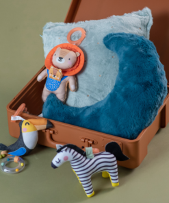 Závesná hračka v podobe leva Harryho pri pohybe hrká. Hrivu leva tvorí mäkké hryzátko pre skúmanie ústami. V kapsičke na brušku leva vykukuje šuštiace levíča Libby.