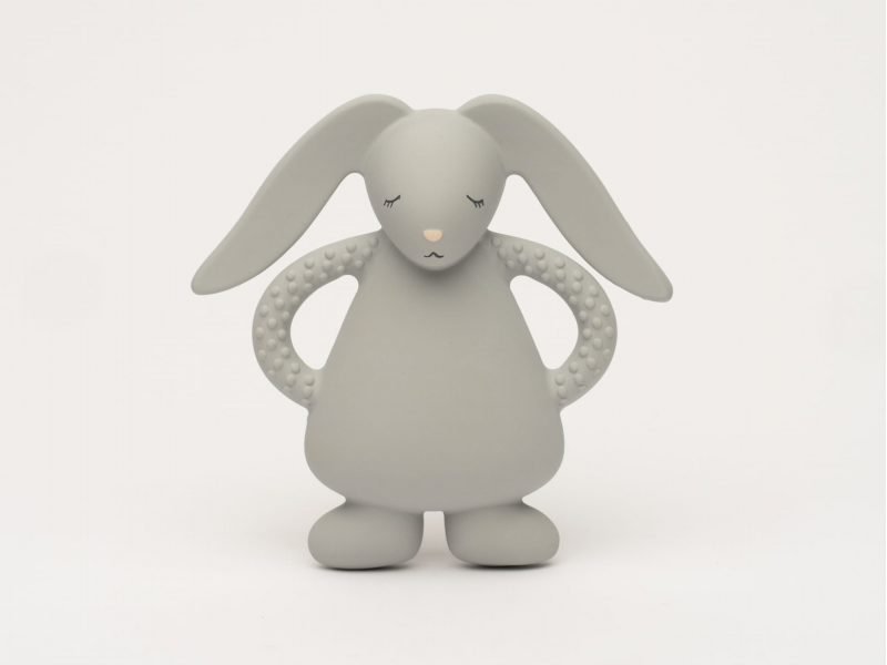 Hryzátko MOONIE v podobe nežného zajačika z prírodného kaučuku bolo starostlivo navrhnuté tak, aby upokojilo boľavé ďasná počas prerezávania zúbkov a zároveň poskytovalo bezpečný a príjemný zmyslový zážitok. Tvar a veľkosť hryzátka umožňujú ľahké držanie malými detskými ručičkami, rôznorodé textúry lákajú dieťa na skúmanie. Hračka je ručne maľovaná netoxickými potravinárskymi farbami.