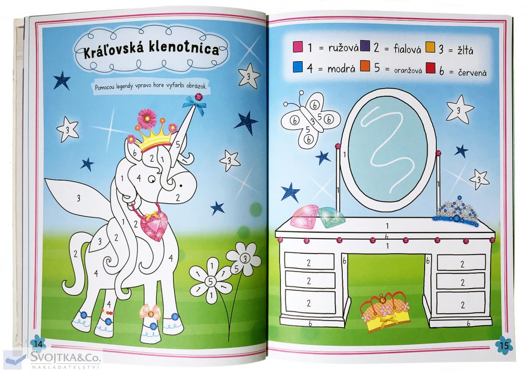 Vstúp do sveta rozprávkových jednorožcov a bav sa na každej stránke pri plnení úloh. Vyfarbi palác, zakrúžkuj rozdiely a domaľuj jednorožcom krídla. V tejto knižke na teba čaká vyše 100 penových samolepiek. Zabavíš sa pri nespočetnom množstve zábavných činností a úloh a na pamiatku tohto dobrodružstva ti zostanú krásne penové samolepky a originálne vytlačovacie karty! Vytlač a ozdob si podľa seba záložky do kníh, pohľadnice, visačky na dvere a postavičky. S penovými samolepkami môžeš dozdobiť vytlačené karty alebo ich nalepiť, kam budeš chcieť! Zoznám sa s Lunou, Trblietkou, Smejkom a ďalšími kúzelnými jednorožcami.
