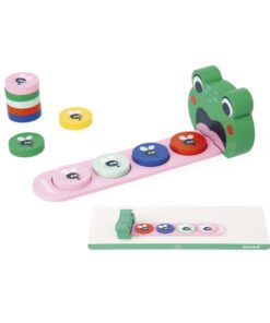 Edukačná drevená hra je vyvinutá v spolupráci s pedagógom pre deti od 3 rokov, je vhodná aj pre deti v materskej škole. Pre chamtivú žabu Froggy je čas obeda. Ale pozor, dôležité je dávať jej mušky na jazyk opatrne, aby si pochutila vždy na niečom inom! Táto vzdelávacia hra umožní vášmu dieťaťu naučiť sa rozlišovať farby a identifikovať logickú postupnosť. Existujú 2 spôsoby hry: Prvým je samostatná hra, počas ktorej musí vaše dieťa reprodukovať logickú postupnosť farieb podľa obrázkov na kartičkách. Druhý režim je spolupráca s rodičom: pomáha vášmu dieťaťu učiť sa o algoritmoch a zároveň zdieľať zábavné chvíle. Táto hra sa skladá z drevenej žaby, jazyka rozdeleného na 3 do seba zapadajúce časti, 36 múch na farebných žetónoch a 12 predlohových kariet. Umiestňovaním múch na jazyk žaby sa vaše dieťa zábavnou formou naučí, ako reprodukovať a identifikovať logickú postupnosť farieb. Hračka vyrobená z dreva FSCTM a lepenky. Edukačná hra vyvinutá v spolupráci s učiteľom školy pre deti od 3 rokov.