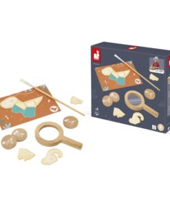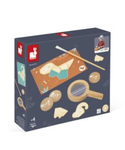 Komu patrí táto kosť? S touto súpravou na vykopávky sa vaše dieťa stane skutočným paleontológom. Cieľom hry je zrekonštruovať rôznych dinosaurov zoradením ich kostí. Čo je lepšie, ako byť plne vybavený lupou a štetcom? Táto sada obsahuje aj 10 kariet dinosaurov, 64 drevených kostí a 10 drevených indícií. Čo tak pridať trochu piesku na ukrytie kostí? Kopanie môže začať a trvať hodiny! Ideálna hra pre rozvoj koncentrácie a pamäti. Hra vyrobená z dreva FSCTM a lepenky. Pre deti od 4 rokov.