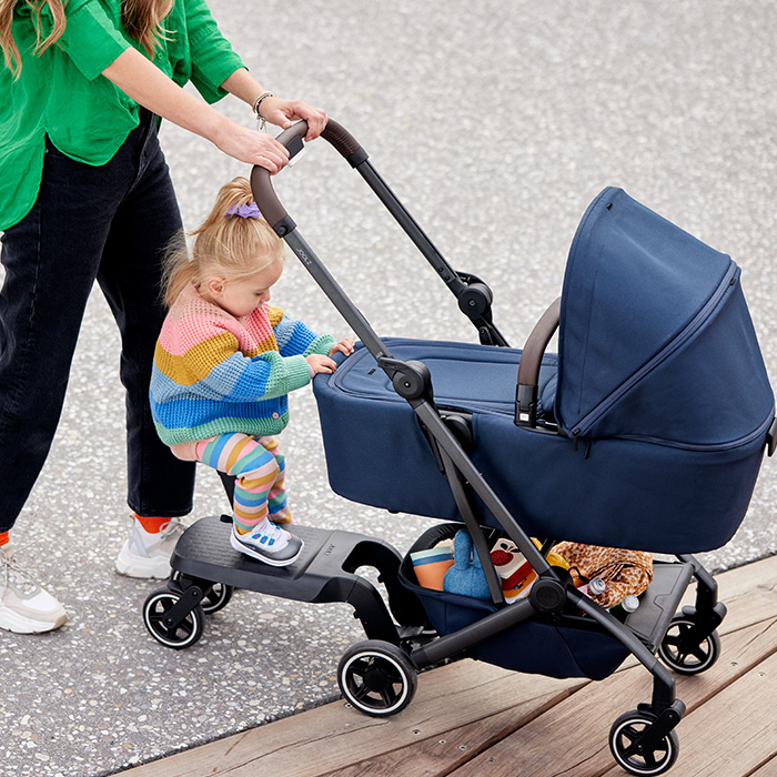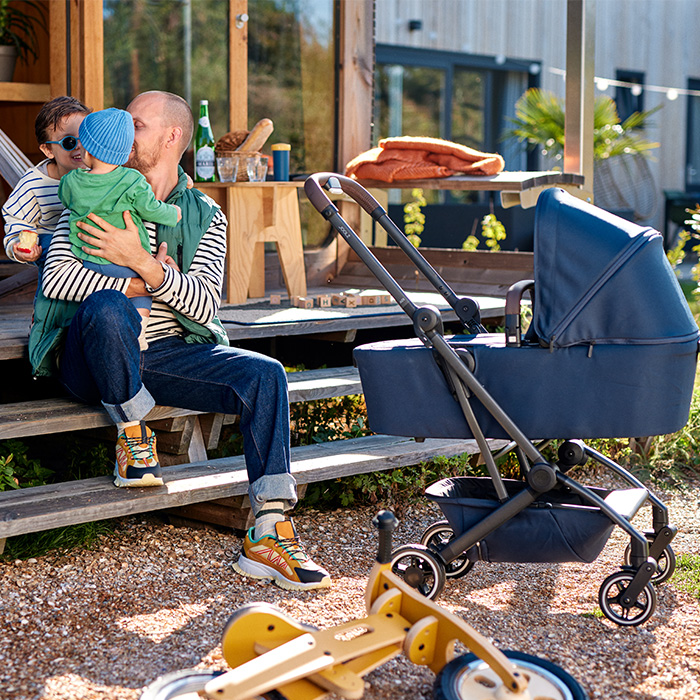 Inovatívny hlboký diel so super ľahkou inštaláciou na podvozok kočíka. Easy-peasy! Použite priehľadnú ventiláciu v predlžovacej slnečnej clone a môžete hrať peek-a-boo. A ak bude ťažké odolávať tej Vašej malej roztomilosti, uchopte dieťa do náručia a prítúlťe sa. Hlboký diel je možné zložiť do kompaktného obalu – dokonca i s pripojeným hlbokým dielom. Jednoducho si ho cez rameno prehoďte a choďte. Šikovné, že? Okolo 6 mesiacov, kedy je Vaše dieťa pripravené preskúmať svet, môžete prejsť z hlbokej vaničky na sedátko a začať tak spoločne objavovať svet. Kto je pripravený na prechádzku?