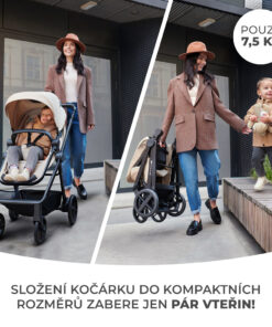 Kočík sa dá ľahko zložiť s pripevneným sedadlom v priebehu niekoľkých okamihov. Tento kočík bol navrhnutý na každodenné prechádzky a dlhšie výlety. Jeho nízka hmotnosť a kompaktné rozmery v zloženom stave vám umožňujú ľahko ho vyniesť po schodoch a vložiť do kufra auta. Nezaberie veľa miesta a ponecháva priestor pre vašu batožinu.