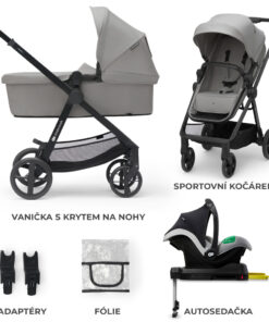 Sada obsahuje: Sedadlo 2 v 1 (vanička a sedadlo), rám, nánožník, pláštenka, autosedačka MINK PRO i-Size (40-75 cm) a adaptéry