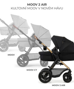MOOV 2 AIR okrem funkčnosti zaujme aj svojou nadčasovou eleganciou. Je to kočík, ktorý v sebe spája klasiku a modernosť. Rôzne farebné verzie sú v univerzálnom dizajne, ktorý je zvýraznený krásnym rámom, ktorý dodáva celej konštrukcii ľahkosť a jedinečný dizajn. Objavte úplne novú kvalitu materiálov a povrchovej úpravy!