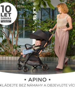 APINO je ľahký, úzky a mimoriadne ľahko ovládateľný športový kočík. Je ideálny ako kočík na každý deň a aj na výlety. Kočík je ľahko ovládateľný a jeho neprepichnuteľné kolesá vás ochránia pred nepríjemnými prekvapeniami na ceste. Nezľakne sa mestskej dopravy, malých výťahov ani schodov. Kočík zložíte do kompaktných rozmerov a vezmete do ruky (váži necelých 7,5 kg) alebo ho pribalíte k batožine do auta.