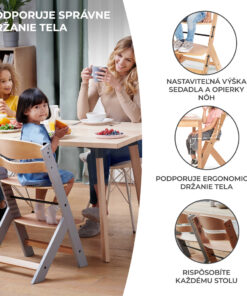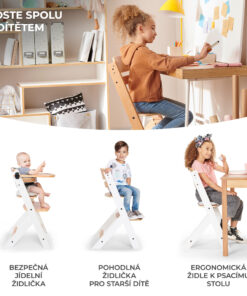 – odnímateľná tácka a pásy umožňujú prispôsobiť vysokú stoličku veku dieťaťa.