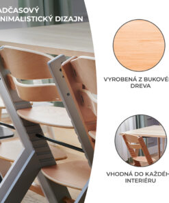 – masívne bukové drevo a preglejka, ktoré sa používajú pri výrobe vysokej stoličky, poskytujú konštrukcii odolnosť. Vďaka tomu je stabilná a pevná — zostane vo vašom dome na celé roky!