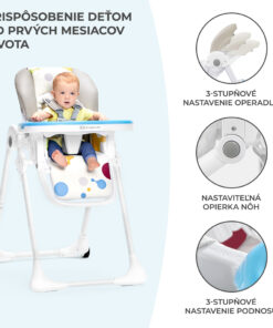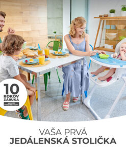 Jedálenská stolička vhodná pre deti od 6 mesiacov do 3 rokov.