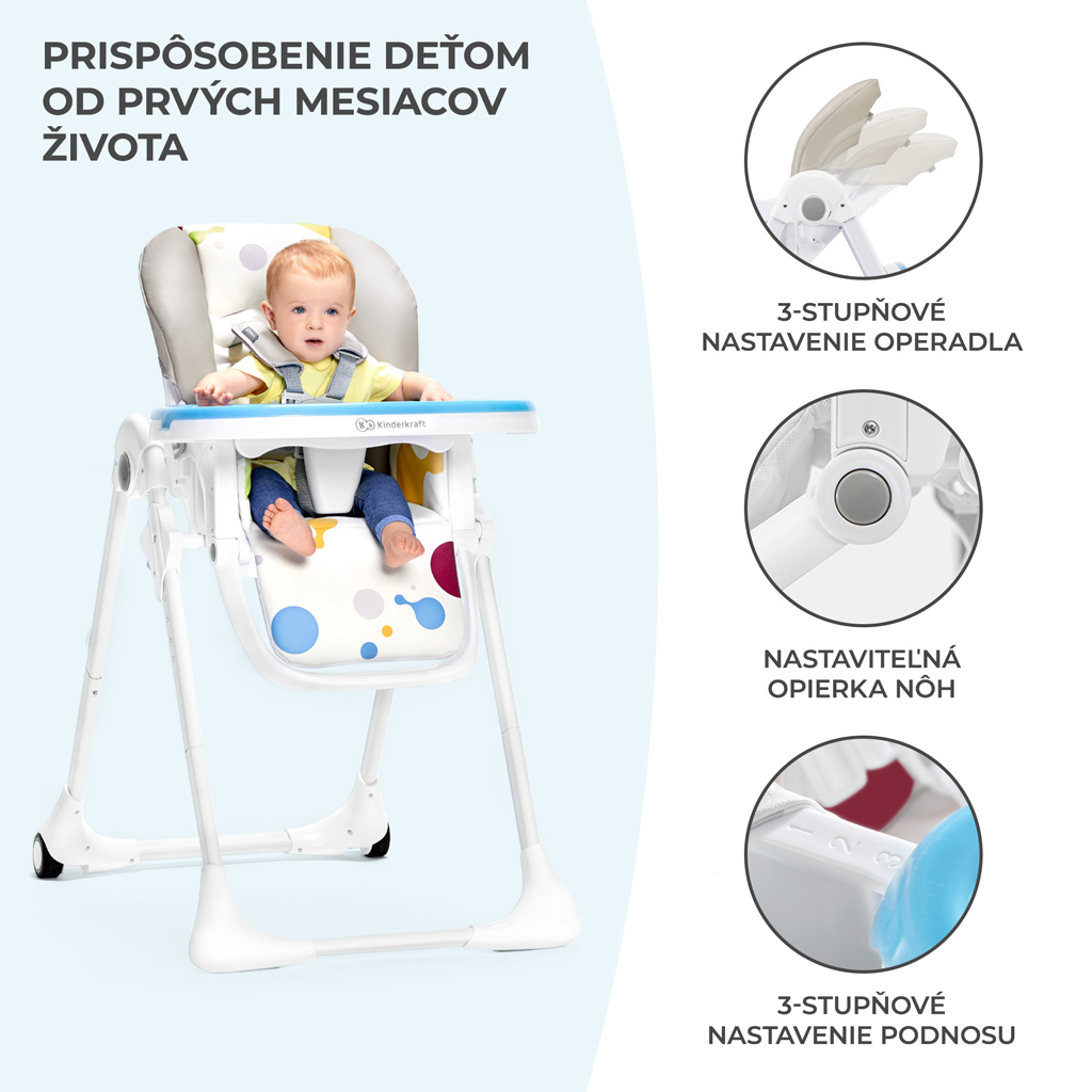 – stabilná a bezpečná vysoká stolička na kŕmenie