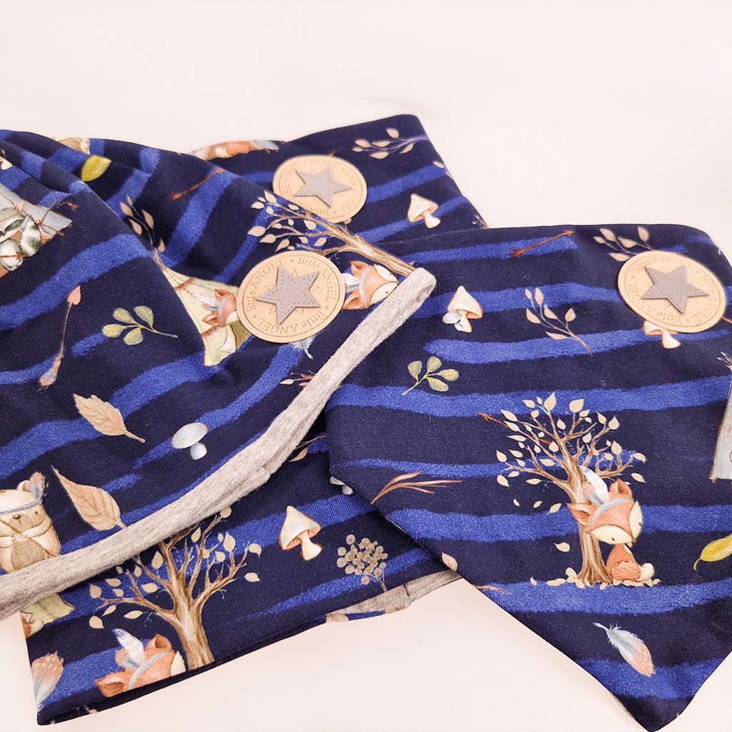 LITTLE ANGEL Čiapka podšitá Outlast® 6 | 54-57 cm tm.modrá zvieratká teepee/šedý melír